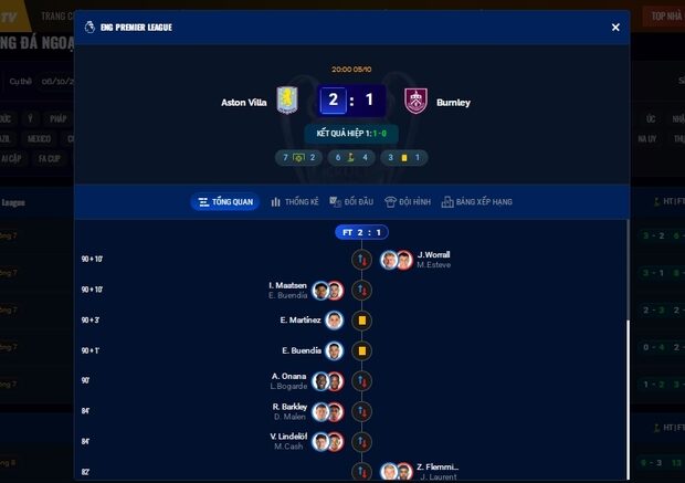 - Đầy đủ chi tiết: Ai ghi bàn, kiến tạo, thẻ phạt, thậm chí thống kê số cú sút, số lần cản phá… đều có đủ.